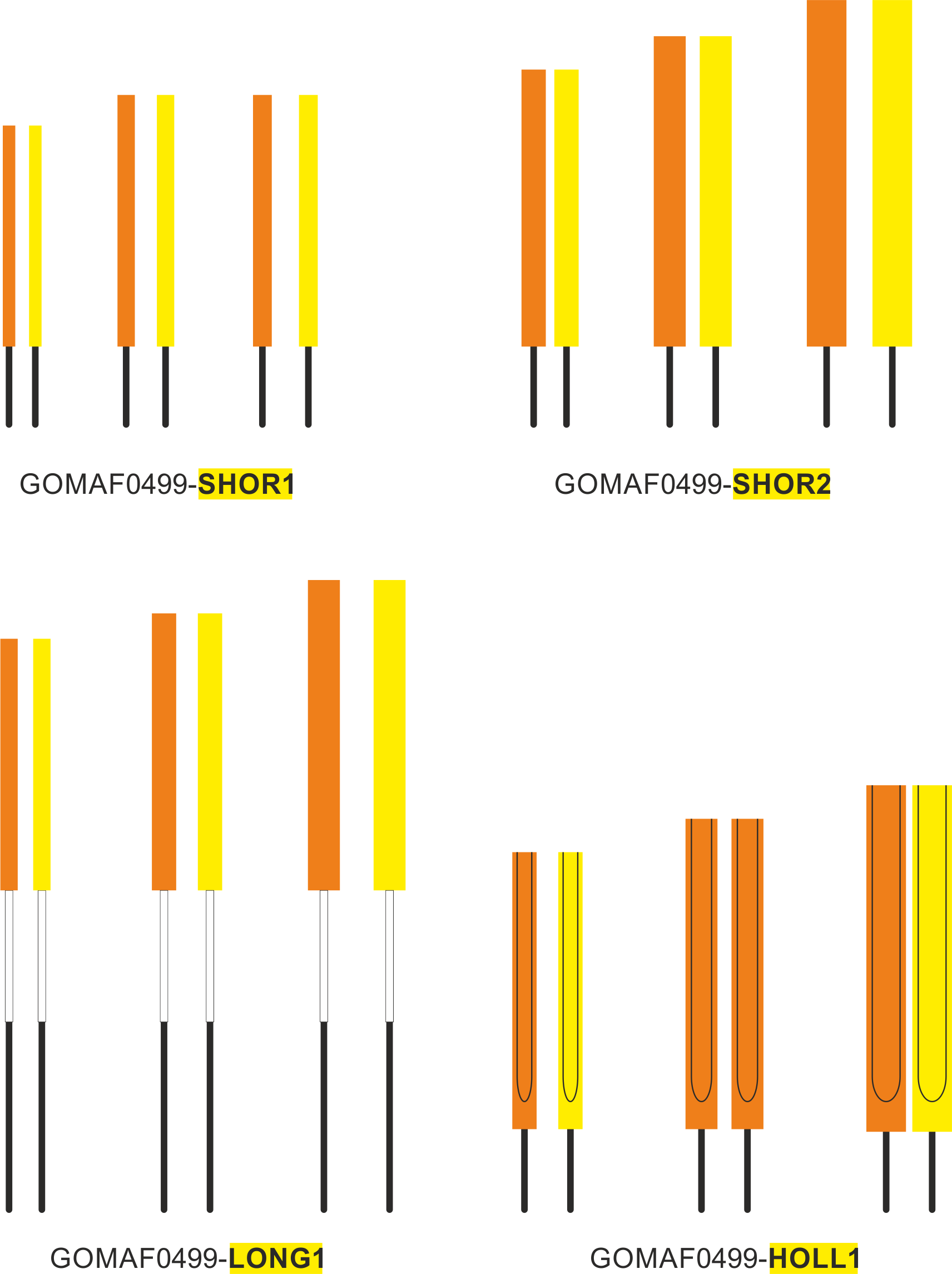 | GOMAF0499-HOLL1 | PACK DE 6 ANTENNES INSERT COURT PLASTIQUE OUVERTE / 3-4-5 mm / 2 par taille et 1 par couleur |